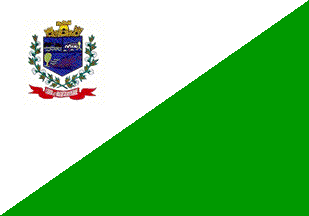 Divided per bend sinister, white over dark green, with the municipal arms in the upper hoist.