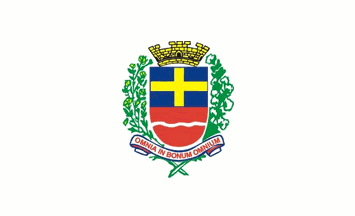 The coat of arms is prescribed by Municipal Law No. 158 of 18 December 1962. "Rounded-off Portuguese shield surmounted by a mural crown. The first [upper] quarter azure (blue) with a Latin cross or and the second [lower] quarter gules (red) a fess wavy argent. The shield supported dexter by a plant of alfalfa and sinister by a plant of cotton flowered the two proper. Beneath the shield a scroll argent inscribed with the motto 'OMNIA BONUM OMNIUM' surrounded by the dates '20/01/1870' and '24/02/1876' all gules."