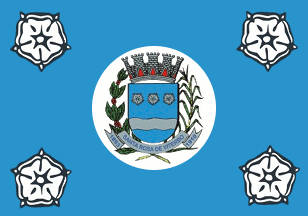 The coat of arms is prescribed by Law No. 270 of 14 December 1956. The coat of arms is a modification of Salvador Thaumaturgo's draft, made to match Lauro Ribeiro Escobar's style of coat of arms. The coat of arms is "Rounded-off shield, azure a fess wavy argent in chief three roses of the same. The shield surmounted by a eight- towered mural crown argent ports gules. The shield surrounded dexter by a branch of coffee fructed and sinister by a sugarcane the two proper. Beneath the shield a scroll argent inscribed with the municipality's name surrounded by the years '1893' and '1910' all azure."