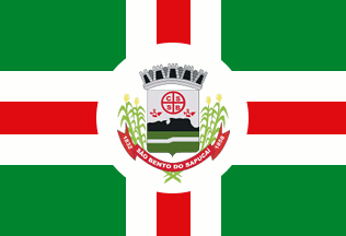 The flag, designed by Antônio Peixoto de Faria, is green with a white- red-white cross. In the middle of the flag is placed the municipal coat of arms inscribed in a white disk. The municipal circle is a symbol of eternity, being a geometrical figure without either a beginning or a end. White is a symbol of peace, friendship, work, prosperity, purity and religious feeling. Red is a symbol of dedication, patriotic love, intrepidity, courage and valiance. Green is a symbol of honour, civility, abundance, joy and hope.