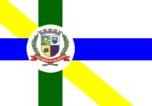 The flag of Embu-Guaçu is prescribed by Municipal Law No. 361 of 21 March 1978. Inspired by the Southern Cross constellation, the flag has for focal point the municipal coat of arms adopted in 1965. The blue stripes represent stars Delta and Beta and the water resources of the municipality. The green stripe represents stars Gamma and Alpha and the forests of the municipality. The yellow stripe represents star Epsilon and the resources of the municipality. http://www.embuguacu.sp.gov.br/peg/index.php/bandeira - Municipal website