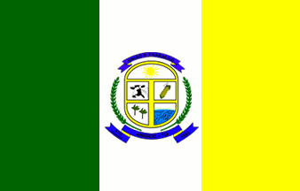 Vertical tricolour, green-white-yellow, with the municipal arms in the centre.