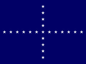 Long triangular navy blue pennant with 21 stars in line, offset to the hoist.