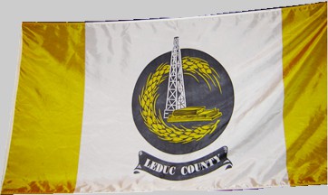 Leduc county in Alberta, Canada, has a flag, which is shown on a photo of the county council.