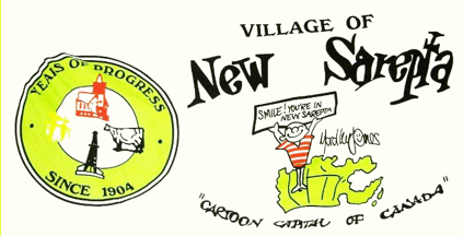 Keywords: alberta | new sarepta | jones (yardley) | church | wheat bushel | oil derrick | cow | cartoon character | cartoon map |
