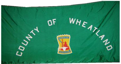 The flag of Wheatland County is green with the county logo under the name.