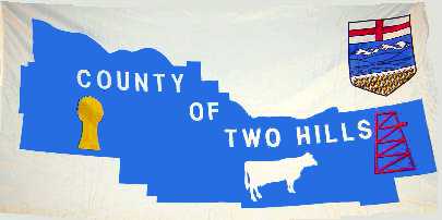 The municipal flag of the County of Two Hills, Alberta features the county’s