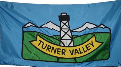 The municipal flag of Turner Valley Alberta (population: 1908) has a flag