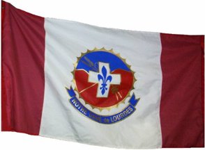 The following information and images were provided to me by Jolyne Bibault regarding the municipal flag of Lourdes, Manitoba: