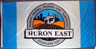 Vertical triband 1-4-1 blue-white-blue, in centre the municipal logo.
