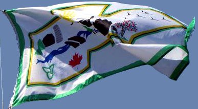 Ontario and Franco-Ontarian flags. The flag is white with a green border and