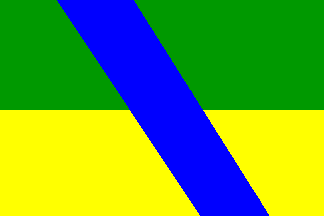 Made by François Lambert of La Tuque QC (Summer 1998). My translation: "Green and yellow represent the main industries in the region: respectively foresting and agriculture. Blue is for the Saint-Maurice river and its geographical alignment (North West). The five parts of the flag are for the [then] five MRC of the area: Maskinongé, Francheville, Mékinac, Le Centre-de-la-Mauricie and Le Haut-Saint-Maurice." Luc Baronian, 8 May 2005
