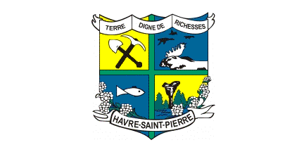 Havre-Saint-Pierre is white with the municipal coat of arms in the middle: