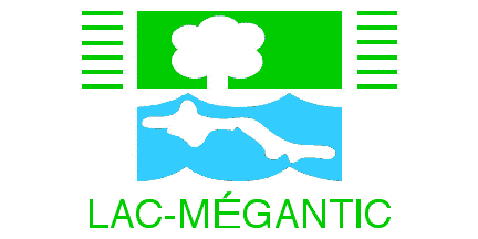 surmounting LAC-MÉGANTIC in green letters. The white element in the blue field