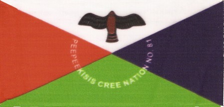 semi-circled inscription in white letters "PEEPEEKISIS CREE NATION NO. 81". It