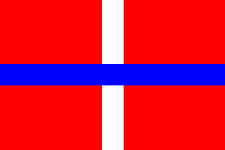 Horizontally divided red-white-red with a vertical blue stripe in the middle.