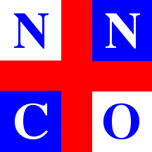 The house flag had a red cross throughout; the upper hoist and lower fly quarters were white, the other ones blue; letters N and N were placed on the upper quarters, and C and O on the lower, all counterchanged.