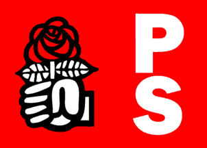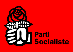 rose-in-the-fist at the hoist and the inscription "Parti Socialiste" (in