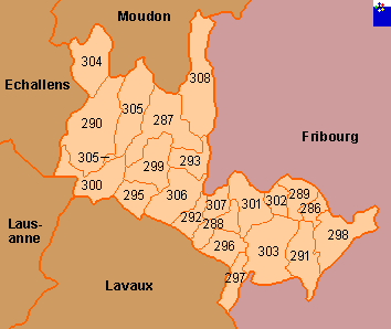 301 Oron-la-Ville 302 Oron-le-Châtel 303 Palézieux 304 Peney-le-Jorat 305 Ropraz 306 Servion 307 Vuibroye 308 Vuillens |