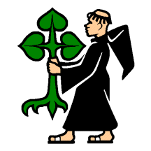 Argent a Monk proper holding a Linden tree Vert.