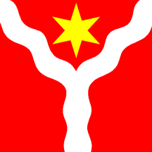The wavy pall on the flag of Wyssachen symbolizes the Wyssachen (= "weissen Bach" or white brook) and its affluents making the flag canting.