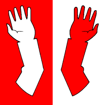 Per pale Gules and Argent, two Arms palewise counterchanged.