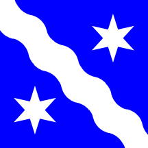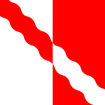 Per pale Argent and Gules, a Bendlet wavy counterchanged.