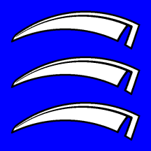 Azure three Scythe Blades Argent in pale.