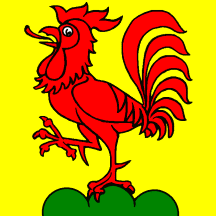 Or, a Rooster Gules on Coupeaux Vert.