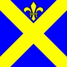 Azure, a Fleur-de-lis in chief between a Saltire Or.