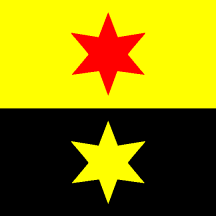 Per fess Or and Sable, two Mullets [of six] palewise, the one in