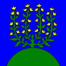 Azure, issuant from a Mount Vert a Bush of the same flowered Or.