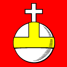 Gules an Orb Argent banded Or and crossed of the second.