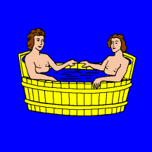 This flag might be canting, because "to bath" is "baigner" in French.
