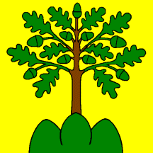Or, issuant from coupeaux Vert an Oak tree proper leaved and fructed