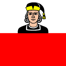 Per fess Argent a Semi Man issuant clad and hatted Sable and Gules.