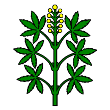 Argent a Hemp stalk Vert fructed Or.