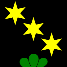 Sable three Mullets Or in bend and Coupeaux Vert.