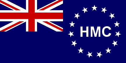 Keywords: cook islands | kuki airani | new zealand | stars: 15 | ensign: blue | union flag | prime minister | customs | crown: royal | hmc | letters: 3 (white) |