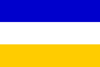 Flag called the Old Country: blue on white on yellow. I believe