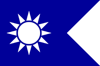 Description: This flag is listed in the 1919 edition of Jane's Fighting Ships. It consists of the canton of the Taiwan flag. The 1930 edition of Jane's Fighting Ships shows a similar Admiral rank flag with a thin horizontal stripe running across the top edge of the flag.