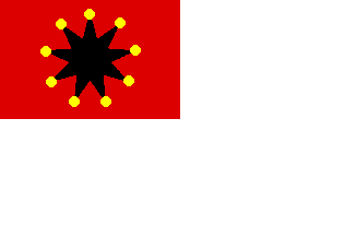 The 1913 state ensign is white with a red canton. On the canton is a black nine pointed star. At the tip and through (for lack of a better word) each point is a white ball. The Merchant ensign is just the canton, used also as war flag. Whitney Smith gives the symbolism as follows: