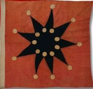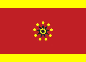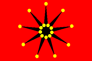 A red flag with a black nine-pointed star and yellow disks was used during