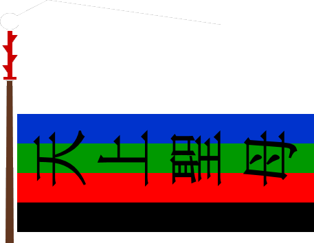 Horizontal five stripes of black, red, green, blue and white with Chinese