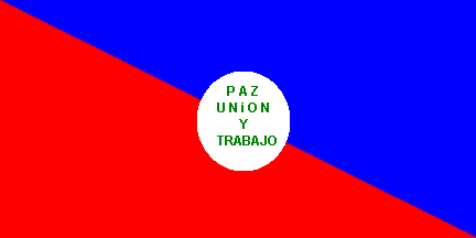 fly) blue-red and charged with white circle woth the motto: PAZ,