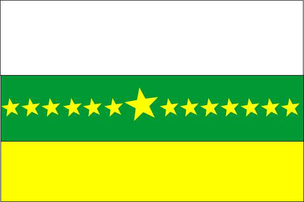 The flag of Ospina is horizontally divided yellow-green-white and charged with 13 stars