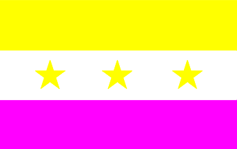 sobre la franja blanca, tres estrellas de cinco picos, de color