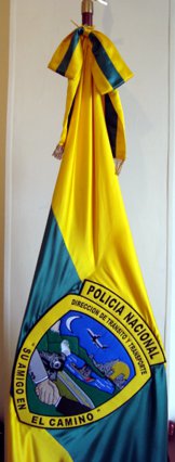 The flag has the same bicolor color scheme as the General Santander Police Cadet School plus the