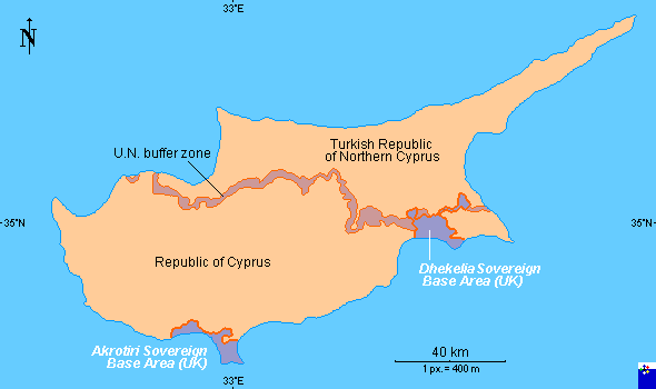 Note: The Republic of Cyprus claims the whole territory controlled by the Turkish Republic of Northern Cyprus. Turkey is the only country to recognize the Turkish Republic of Northern Cyprus.