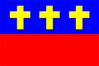The municipal homepage shows Tetín's arms: per fess azure three crosses or, gules a noose argent.